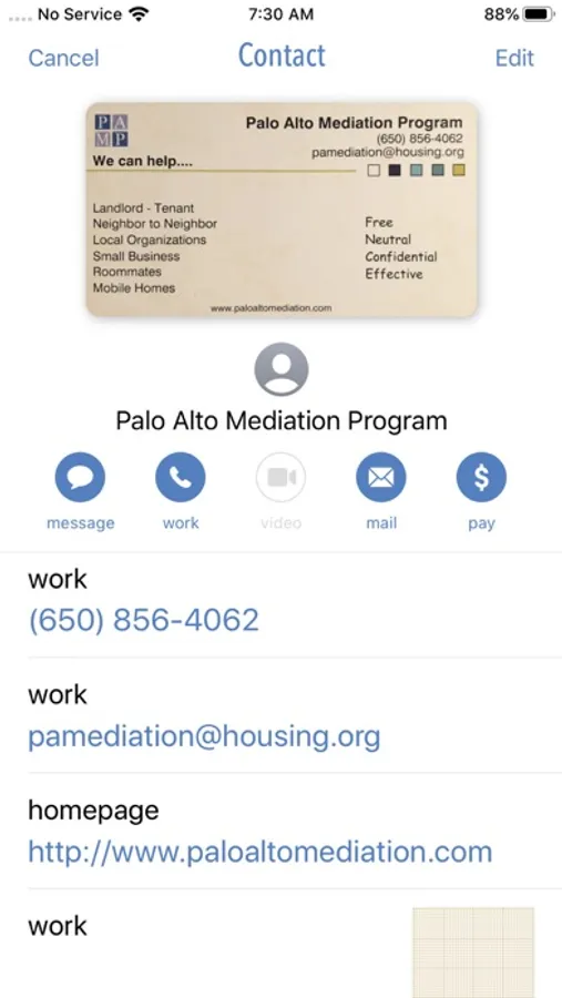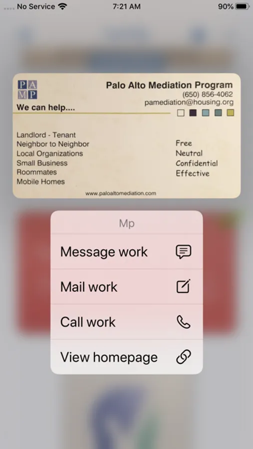 - Contextual menus for quick access to email, phone, text, and websites
