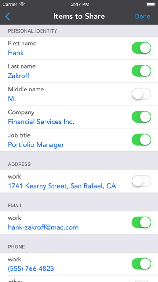 - Share your contact info with customizable details