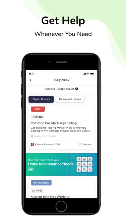 • Have a leaking tap or seepage in the ceiling, which you want to report to Community Maintenance team? Do it right from the ADDA App. Take photo, for ready reference of maintenance team, and track the progress to closure