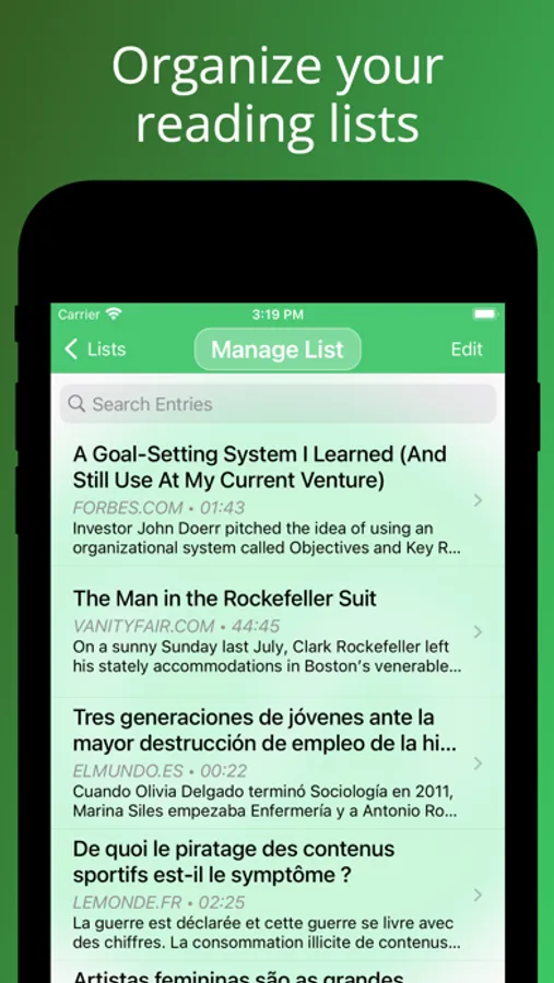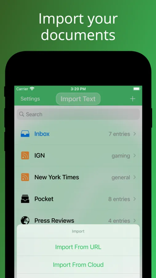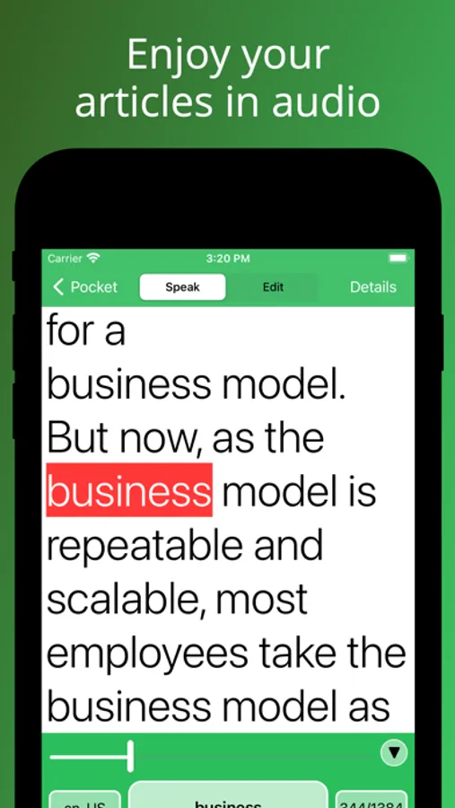 How does it work? Give the link of your article to Speaky and that's it. It will extract the main content, detect the language, and read it out loud to you. You can retrieve content from your favorite websites (RSS feeds supported), import files from the cloud (pdf, doc, png, etc.), or scan documents with your camera.
