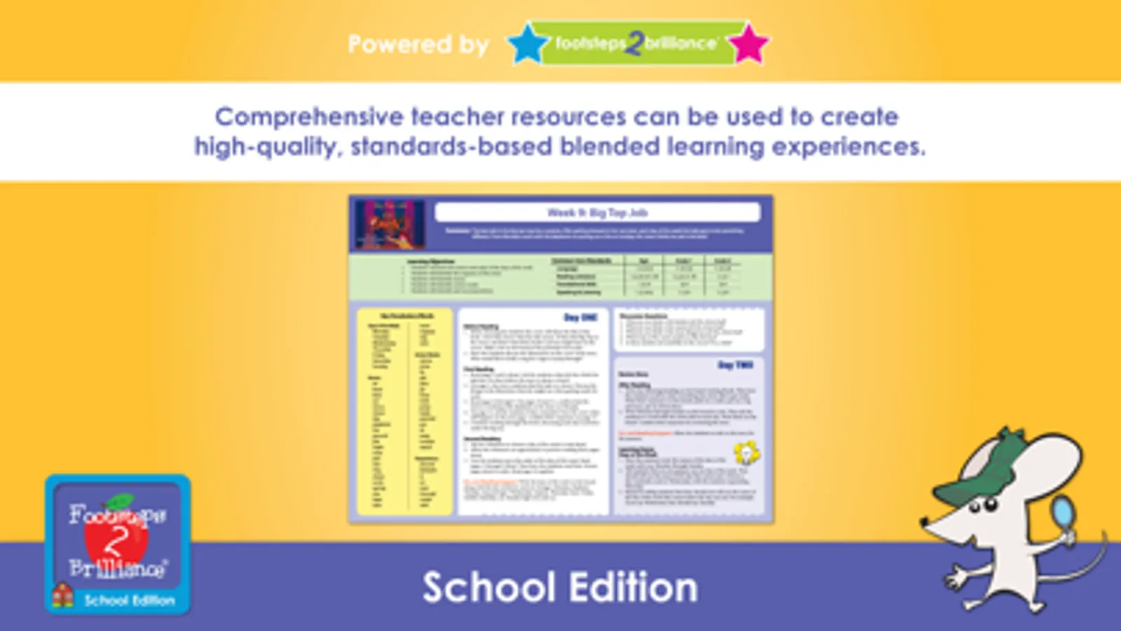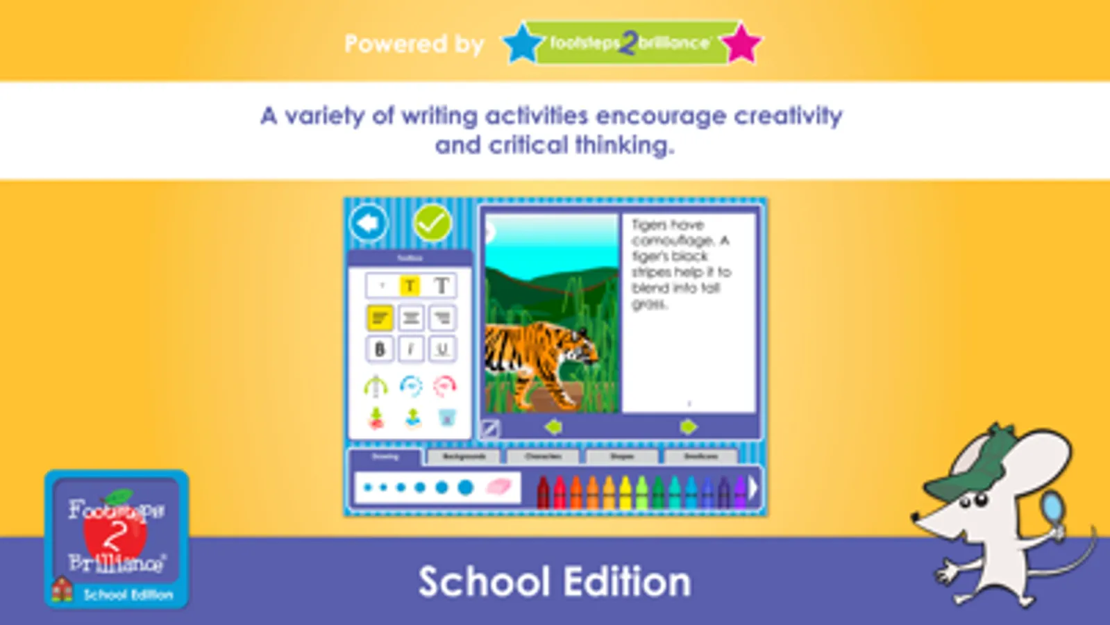 "Footsteps2Brilliance®, Inc. is a delightful way for children to experience the beauty, enchantment and rich literature of books using technology. Behind the child friendly format are abundant resources for parents and teachers to use to gain insight into a child's cognitive development and language acquisition."