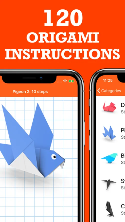 Best origami instructions App! Full version. 120 3D Animated instructions.