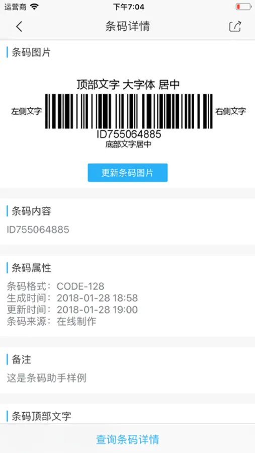 条码助手App支持各种类型条码,条码图片清晰带数字,支持自定义文字位置,可添加自定义文案,满足你个性化的条码制作需求。