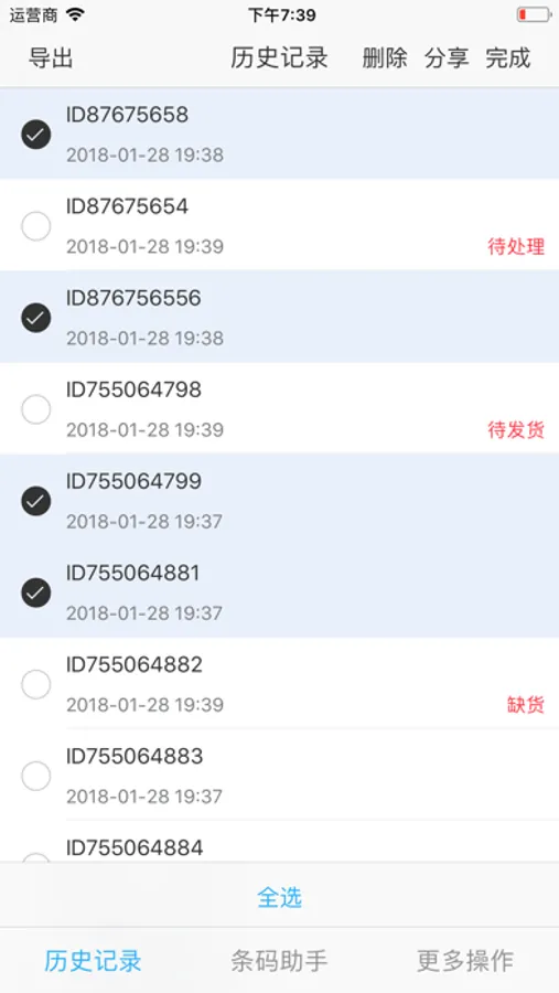 淘宝,微店,微商,快递等使用商品条形码管理快递/货物;