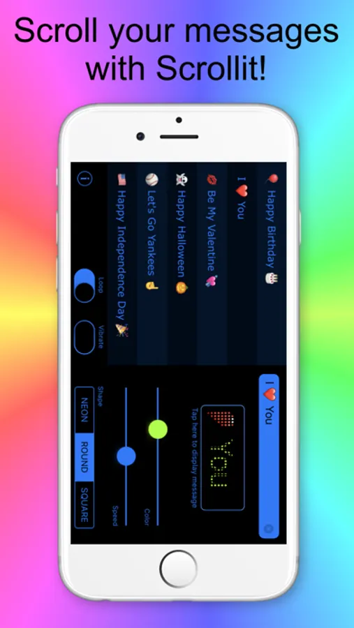 What adds to the fun is that ScrollIt offers easy-to-type emoticons right from the same keyboard. Make your text even more fun to watch!