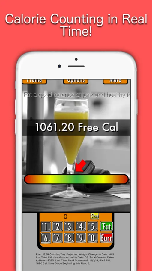 - Real time calculations of the number of calories you need to consume to reach your goals