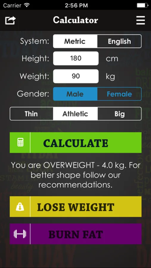Fitday calculator - the unique calculator that will show your excess weight and specific recommendations how to transform your body into perfect shape.