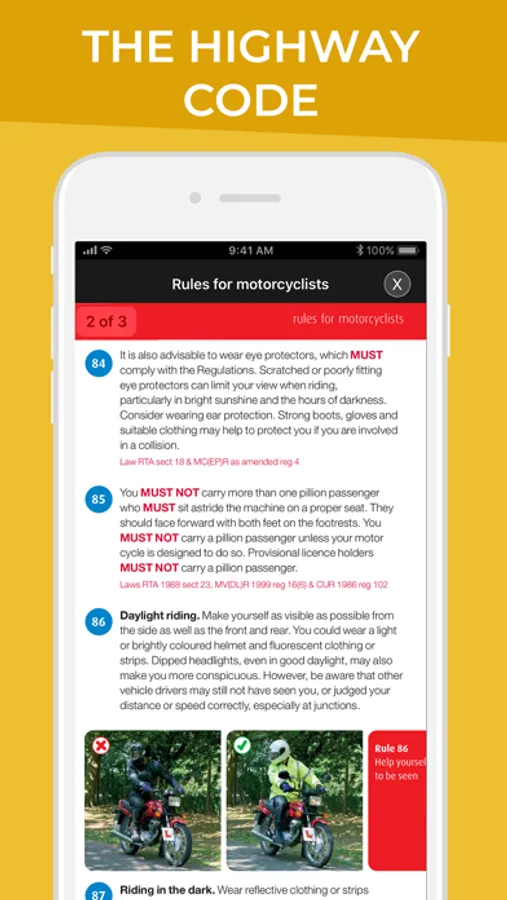 - Contains the complete DVSA Theory Test question bank for Motorcyclists in Great Britain and Northern Ireland.