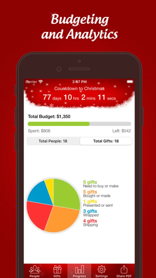 The app features convenient data visualization and sorting tools, which makes it super-easy to find all people without a present or people that you don’t have a gift idea for. For better understanding of your current progress towards making everyone happy, the app visualizes your gift shopping statistics in the form of charts. Finally, you can do your Christmas planning on any of your iOS devices – thanks to the integrated support of iCloud, all Christmas List data are synchronized between devices even if devices have different Apple IDs.