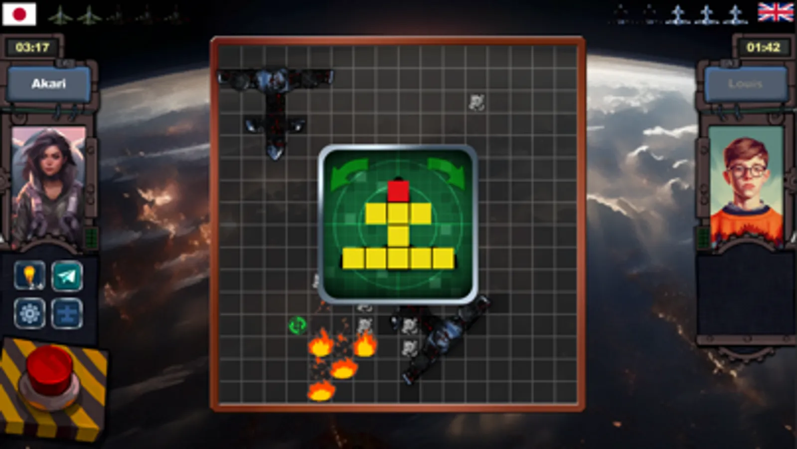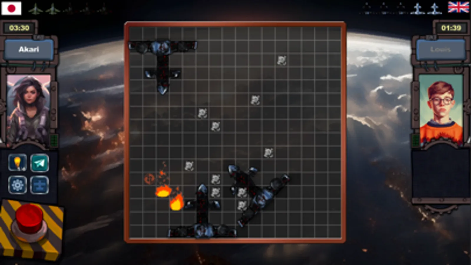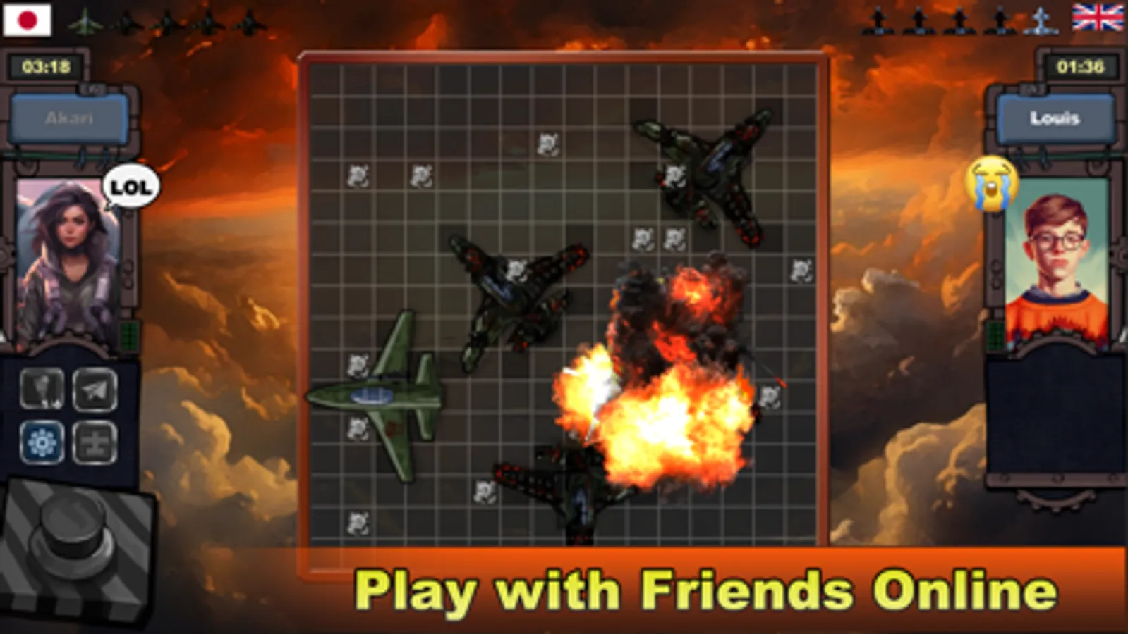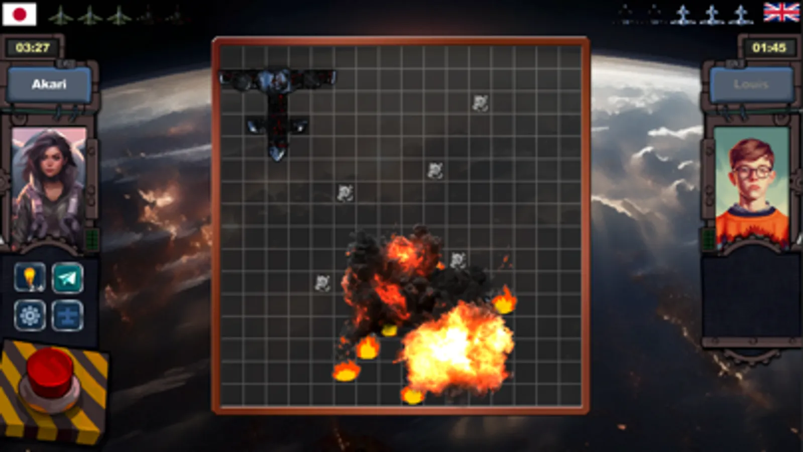 At each turn player choose a tile to strike, if it hits the enemy plane, it'll set it on fire. If it hits the weakness tile, the plane will be destroyed.