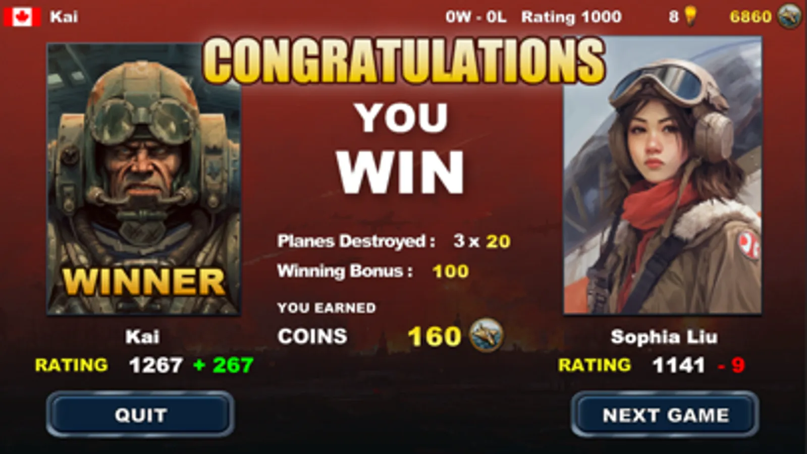 Battleplanes is a game of strategy and suspense that will stimulate your brain. Players take turns to search and destroy each other's planes. Each plane has 8 orientations and a weak spot. A good player will analyze the hits and misses, together with the shape of plane and locate that weak spot using as few steps as possible. This makes battleplanes more challenging and exciting to play than the classic sea battle game.