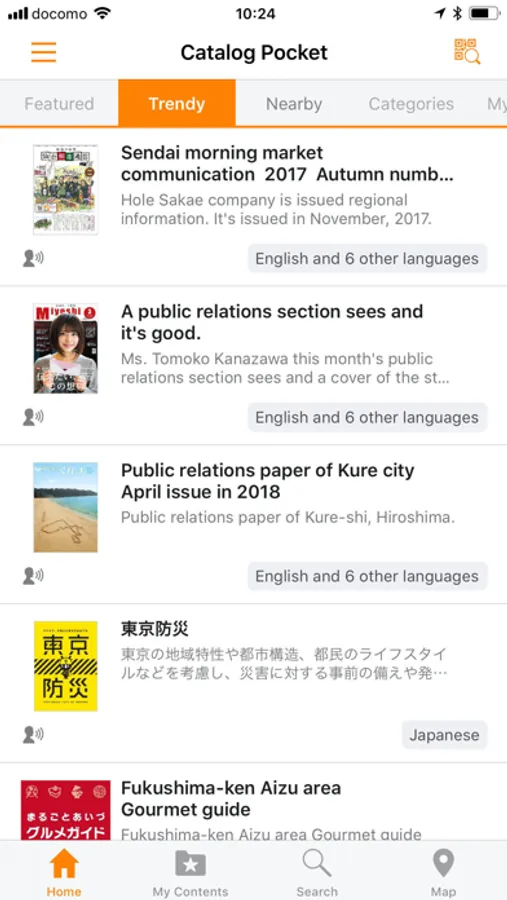 The Catalog Pocket app allows you to look up and browse information on tourism in Japan, as well as discount coupons, free newspapers and more, using your native language (Japanese, English, Simplified Chinese, Traditional Chinese, Korean, Thailand, Portuguese, Indonesian and Spanish.).