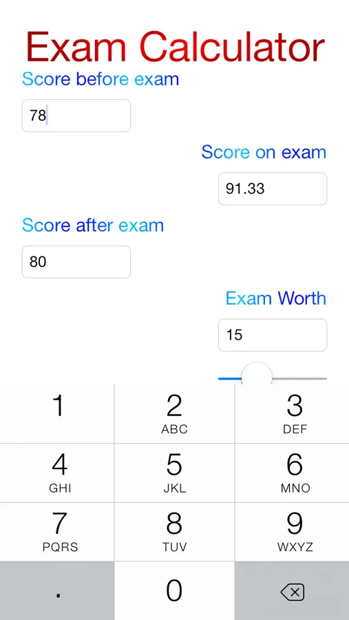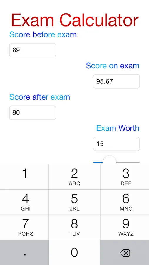 Want to know what grade you need to make on your final exam to raise your grade to a 90? Want to know how a 100 on your exam would affect your final grade? Exam Calculator instantly does the math for you
