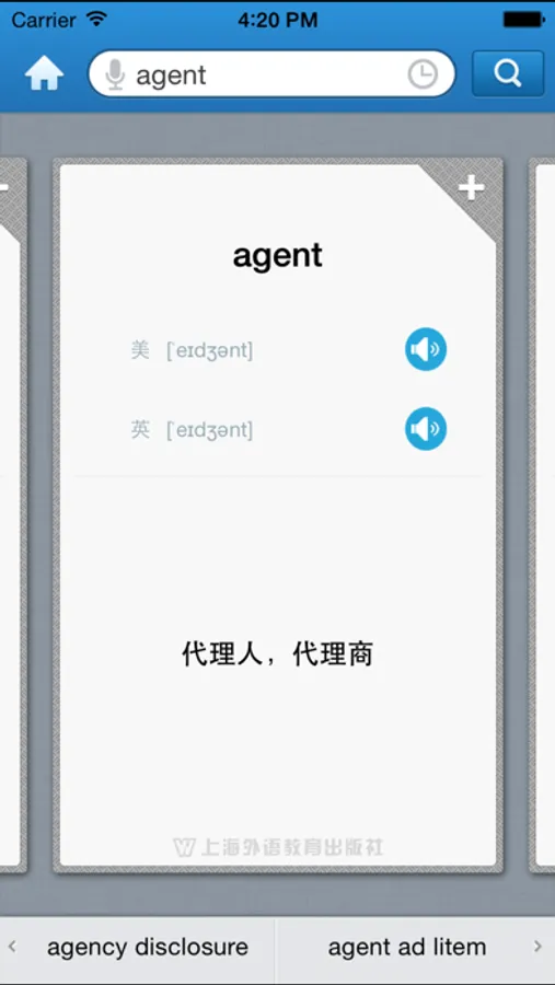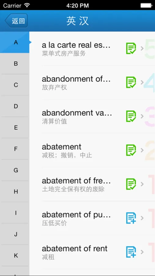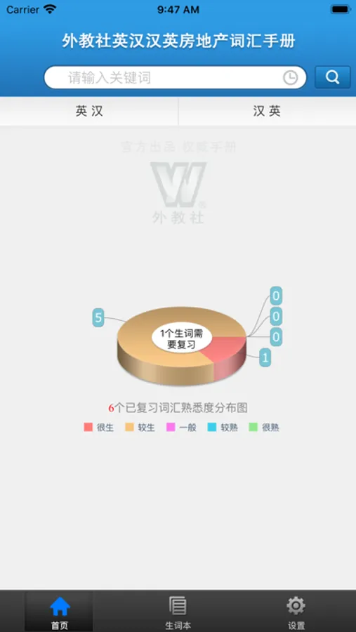 外教社官方权威正版发布,其他同名房地产词汇手册均为盗版。《外教社英汉汉英房地产词汇手册》是由上海外语教育出版社发行的词汇词典类软件,软件收录了房地产基本词汇(英汉、汉英双向收词8000余条),是房地产人士必备手册。本软件由海笛科技提供产品支持,具备手机上最便捷的查词功能(摄像头查词、语音查词等),还有清晰发音、生词收藏、生词辅助记忆等学习功能。选择高品质词典和词汇手册,学习更有保障!
