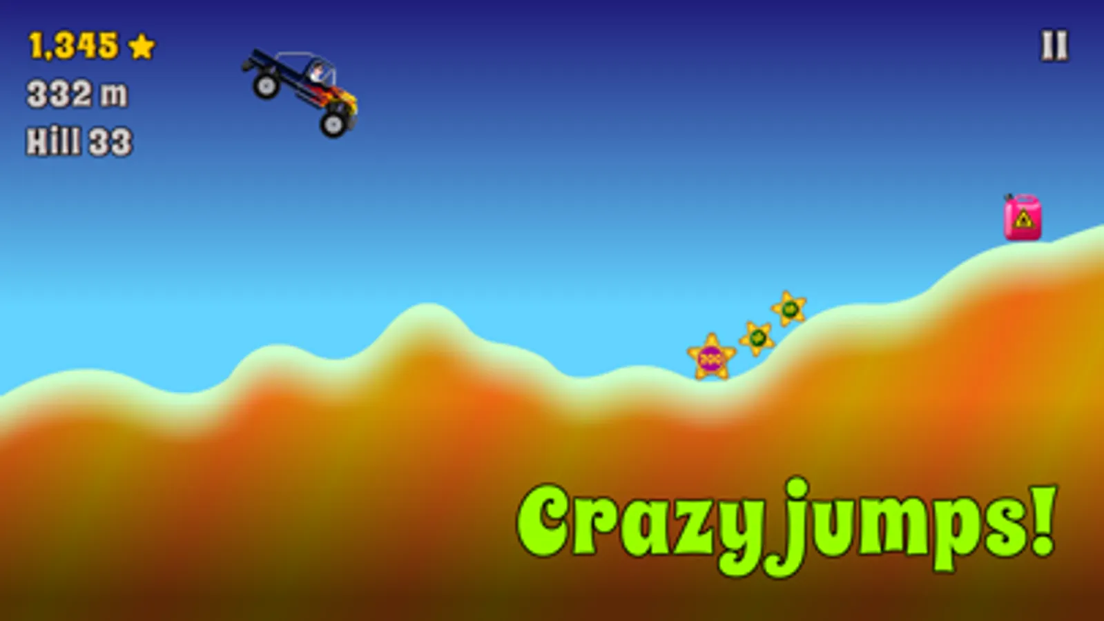 Pure physics fun - drive, race, climb the hills and jump until you nearly fly!
