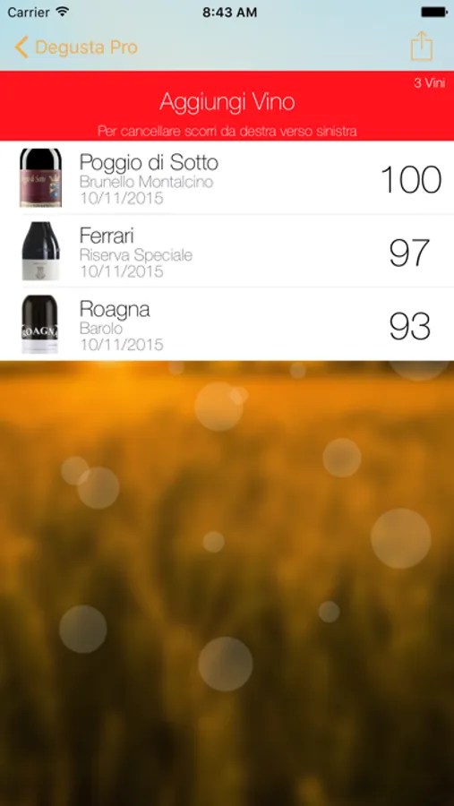 - Visualizzare il Riepilogo di ogni degustazione per avere a portata di mano le informazioni più importanti della tua degustazione