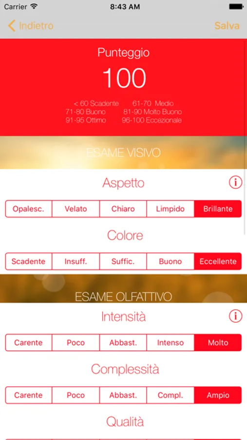 - Compilare la Scheda di Degustazione dettagliata per avere il punteggio associato alla tua degustazione