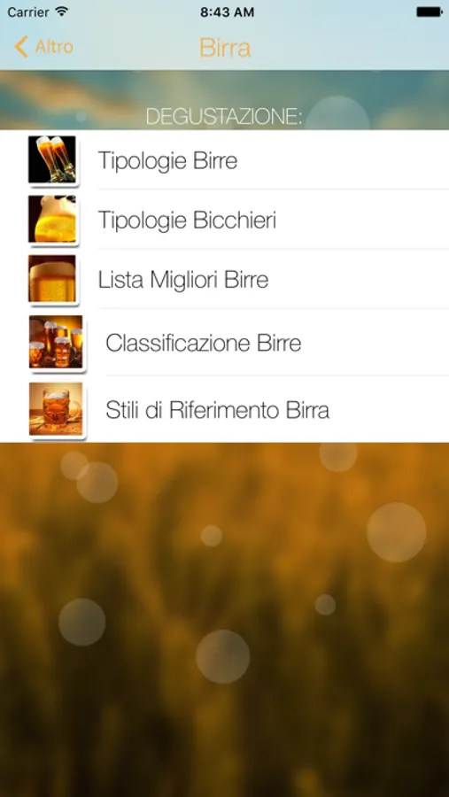 In aggiunta potrai venire a conoscenze di informazioni aggiuntive sulle degustazioni , come le Tipologie delle principali Birre, le Tipologie dei Bicchieri da Birra, la Classificazione dei Vini Italiani, i Sentori positivi e negativi associati all’Olio, le principali Tipologie di Cultivar, la Classificazione dei principali Difetti del Vino, la classifica dei Migliori Vini del Mondo e d'Italia 2013, le principali Tipologie di Vitigni Italiani, la classifica delle Migliori Birre d'Italia, la Classificazione delle Birre Italiane e la lista degli Stili di Riferimento della Birra.