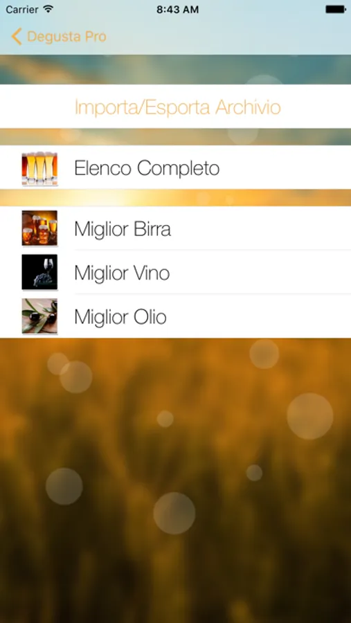 - Visualizzare l’Elenco completo di tutte le degustazioni inserite (Birra, Vino e Olio)