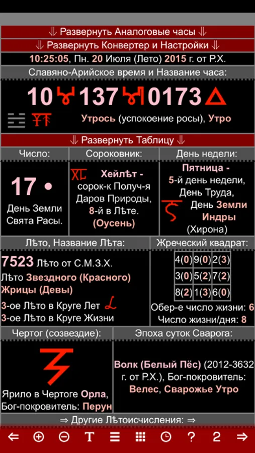 Древний Славяно-Арийский Календарь-Часы (Коляды Дар) с конвертером: нумерология, славянский гороскоп и многое другое.