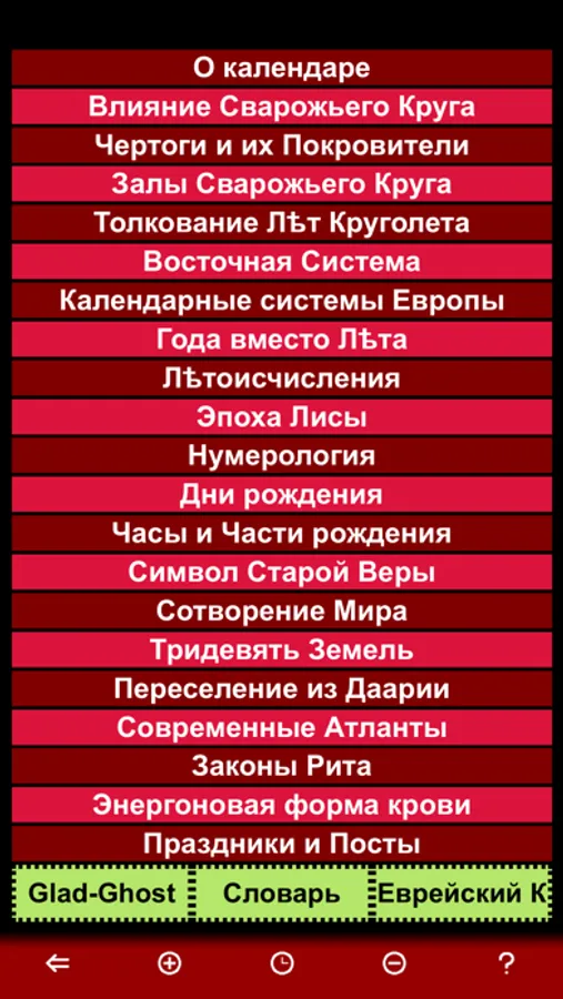 Кроме того, в приложении Вы найдете описание календаря и интересные статьи, которые расширят Ваш кругозор и, возможно, поменяют Ваше представление об этом Мире.