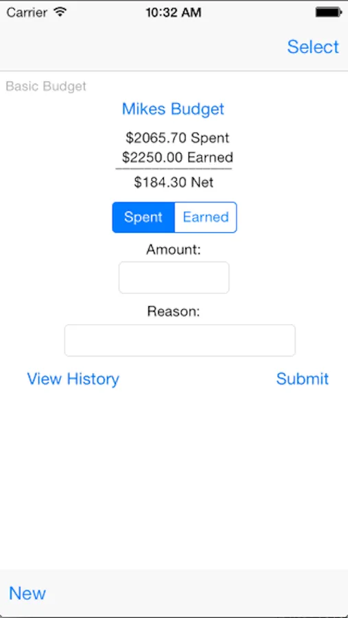 View a live display of your net budget or a history of all transactions.