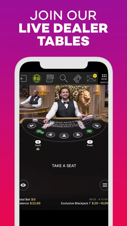 • Immersive and exciting Live Dealer blackjack, baccarat, and roulette games