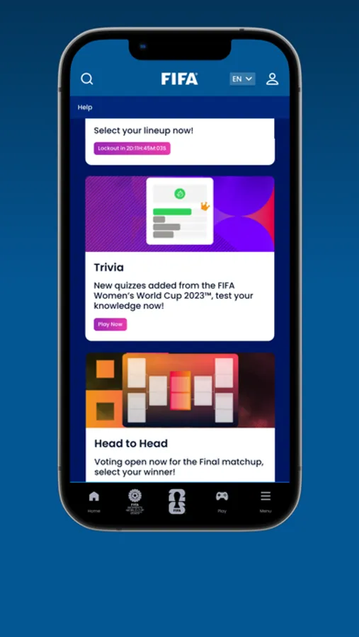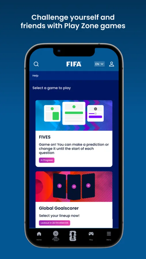 • Challenge yourself and your friends with trivia and predictor games in the FIFA Play Zone.