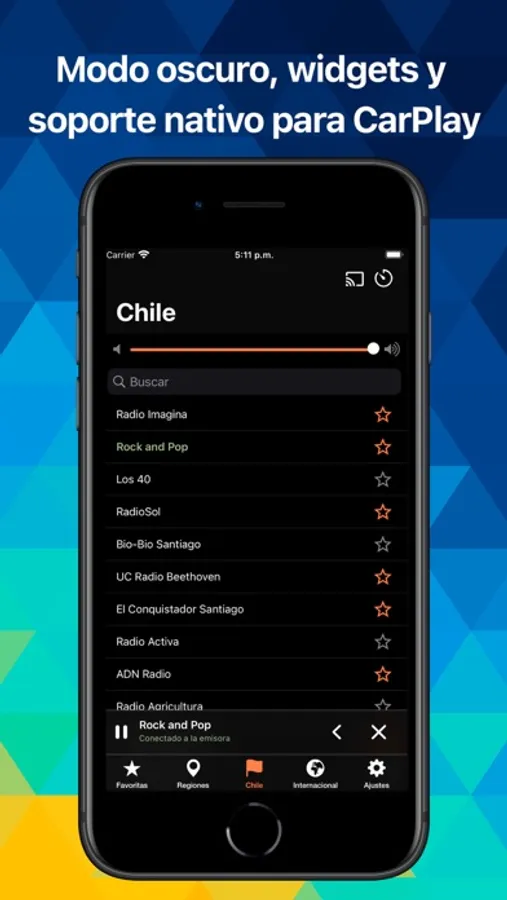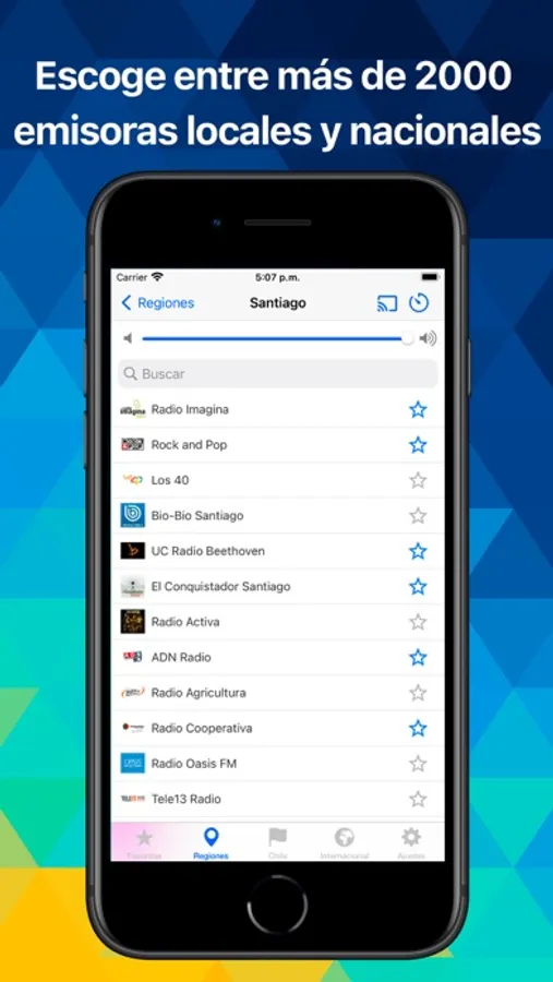 - La mayoría de apps de radio no están enfocadas a Chile. Te entendemos, cuidamos los detalles, sabemos lo que quieres escuchar y hemos llenado la app de emisoras locales y nacionales sin importar lo pequeñas que sean. Y si no ves alguna, contáctanos y la añadimos.