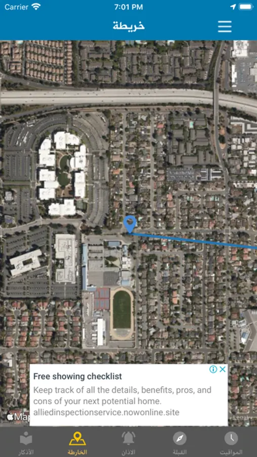 •يعرض الموقع الحالي ، و اتجاه القبلة على الخريطة