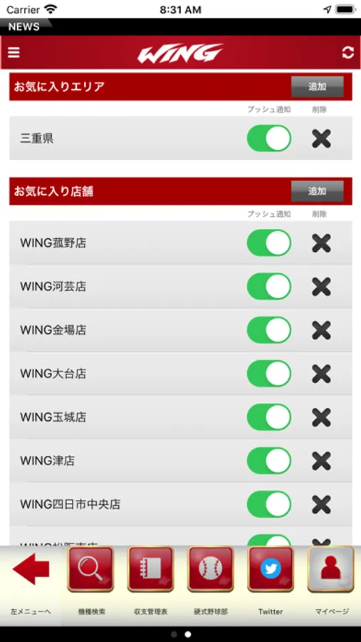 アミューズメントホールを展開する「WINGグループ」の公式アプリです。