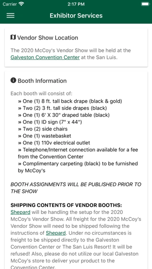 - Access information about services available to exhibitors
