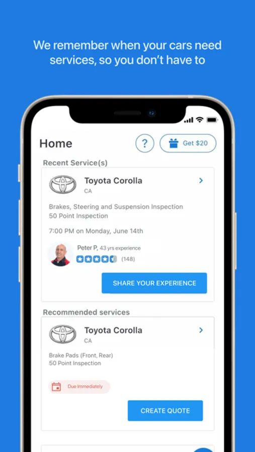 Schedule maintenance services, diagnostics or repairs at your own convenience. Simply enter your zip code, year, make and model of your car and you’re on your way to a hassle free car repair experience. One stop shop for all your car maintenance needs. Track your car repair appointment from booking to completion. We will help you keep track of your car’s service history as well as upcoming maintenance services.