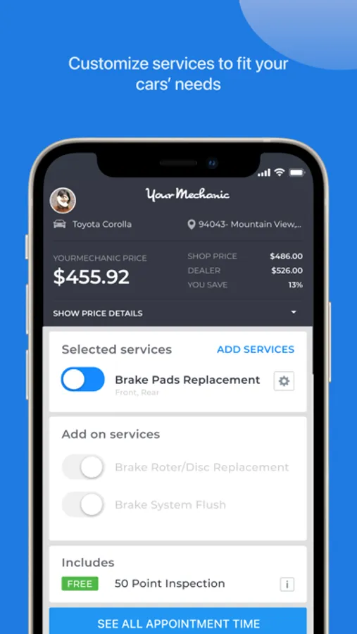 What’s more annoying than spending your day at the repair shop is the expensive bill that you have to pay for simple repairs. In the YourMechanic App, you will be able to review quotes before booking the repair. Also, YourMechanic offers financing options with Affirm. YourMechanic is also partnered with O’Reilly Auto Parts, AutoZone and Advance Auto Parts to provide quality parts for your car.