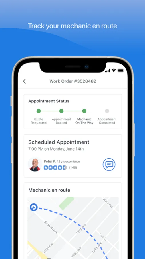No need to wait by the door in anticipation for the mechanic’s arrival. When the mechanic is on the way to your appointment, you will be able to track the mechanic’s location in real time.