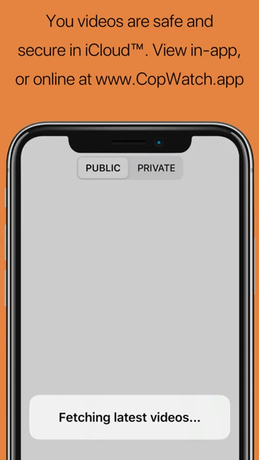 Please note -- all recordings are securely uploaded to iCloud. At all times, you can control who, if anyone, can see your videos. Manage your uploaded videos at https://CopWatch.app