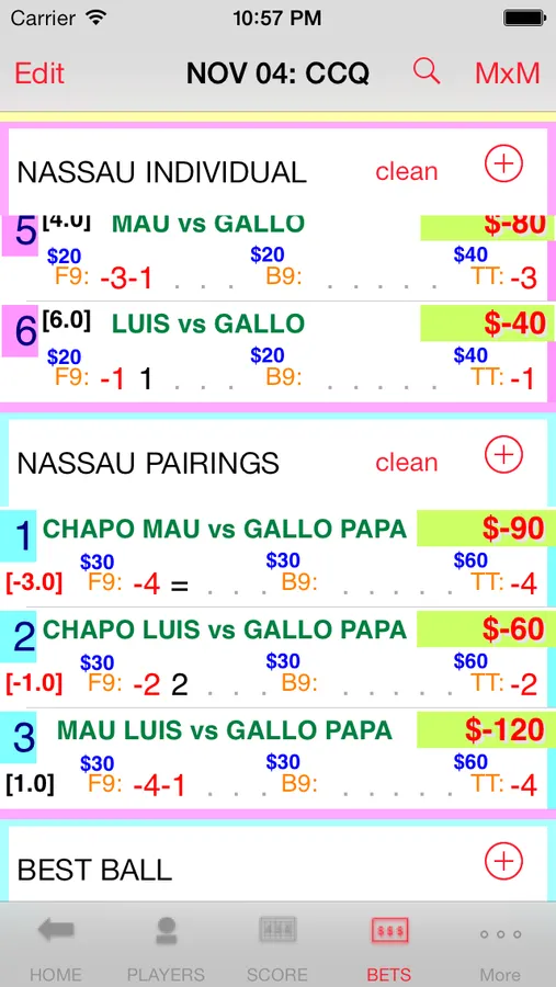 The Best Golf Score Card App for Betting. Tracks Scores, Side Bets, Nassau, Skins, Rabbit, Units, Unlimited Players, Unlimited Rounds of Golf, Yards Scope, Created from Golfers to Golfers.