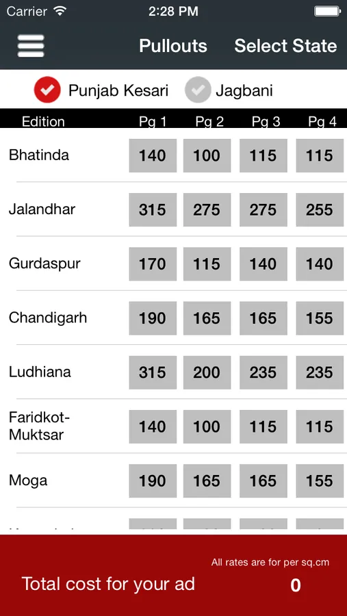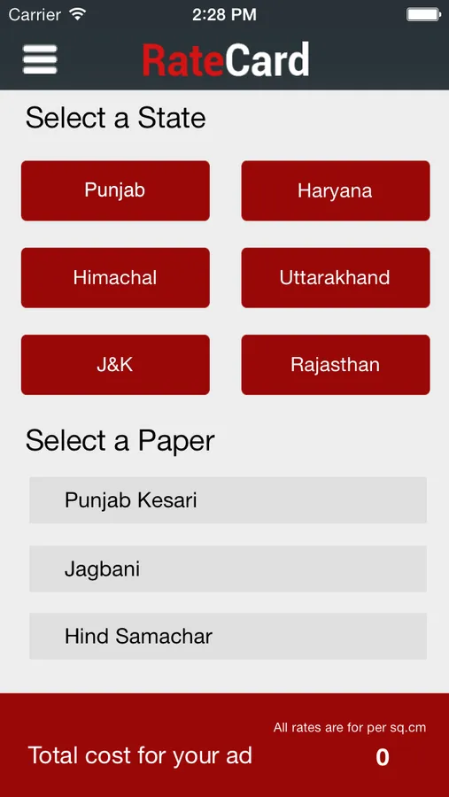 The Rate Card App is for Advertisement rates for all the 3 newspaper for the 6 States which the news paper cover. The primary target user for this app are the Agencies and Distributors who get ads for the News Paper group.
