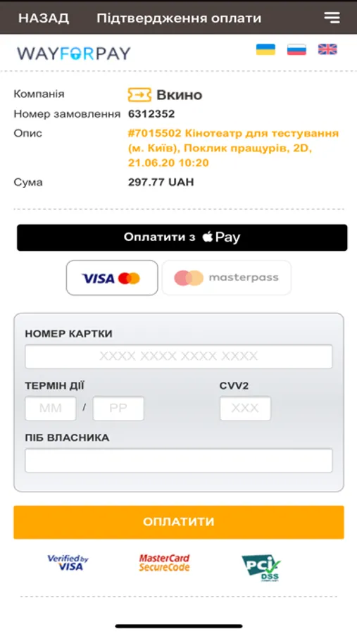 Покупка билетов онлайн в кинотеатры, оплата банковской картой VISA, MasterCard
