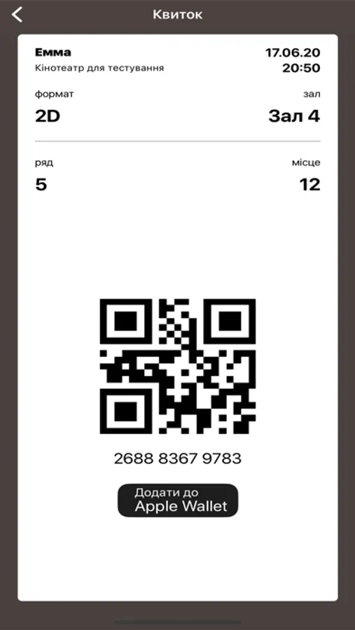 Сохранение билетов со штрих-кодом, чтобы не распечатывать их, а показать на экране мобильного устройства контролеру для считывания сканером (в избранных кинотеатрах)