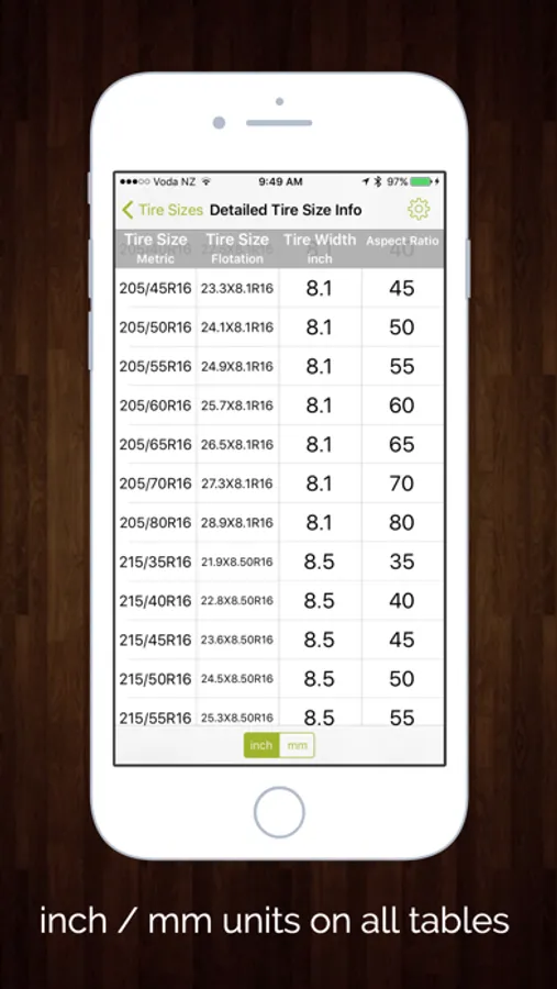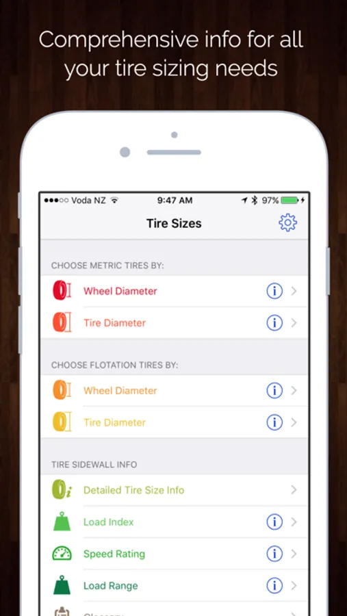 A comprehensive app for all your tire sizing needs.