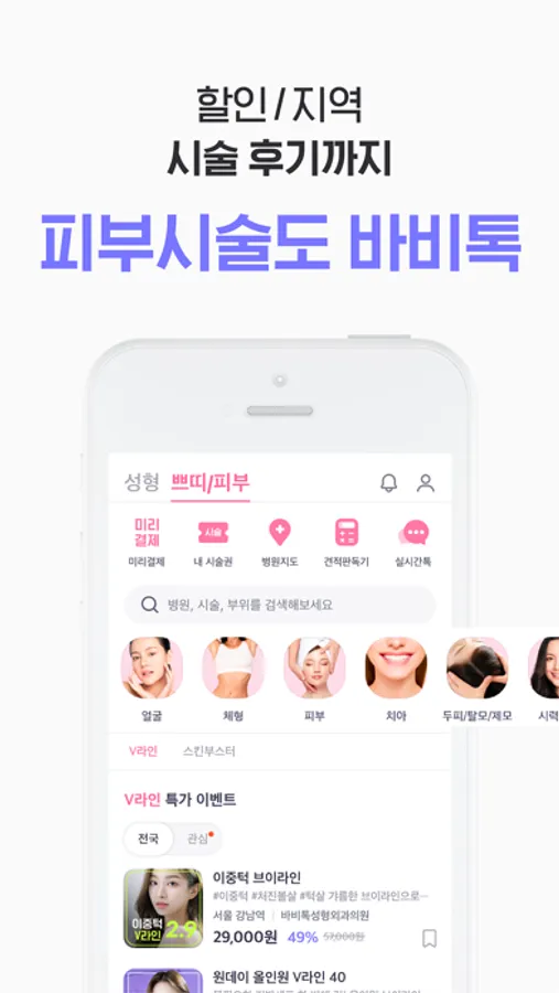 - 앱을 통해 간편하게 피부시술권 미리 결제하세요