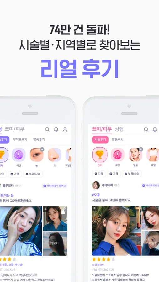 - 리얼한 후기 확인하고, 나에게 맞는 시ㆍ수술 방법을 선택하세요!