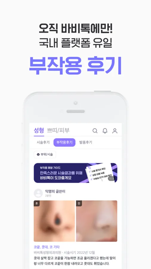 ※ 시・수술 전 객관적인 선택을 도와주는 ‘부작용후기’