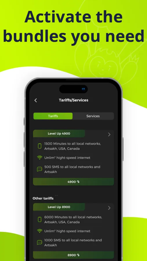 * Everything you need in a single point. Forget about shortcodes. Activate bundles, check your inclusions, check or recharge your balance, switch to other tariff plans and activate roaming with a single touch.
