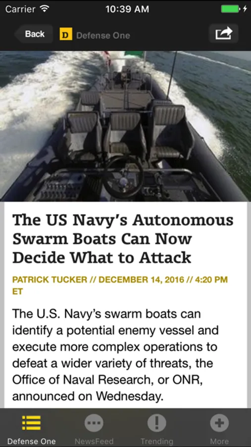 Download Defense One, the free news app providing real-time updates and trending stories from more than 50 defense news sources.