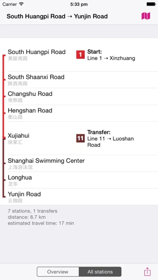 ROUTE PLANNER - instantly finds the fastest route and displays it on the map including transfer stations.