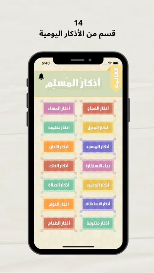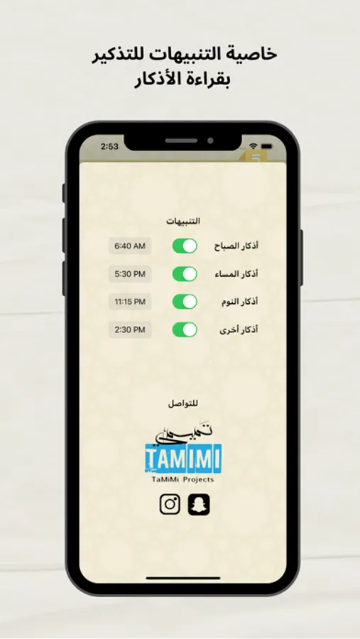 امكانية وضع تنبيهات للتذكير لقراءة الاذكار.