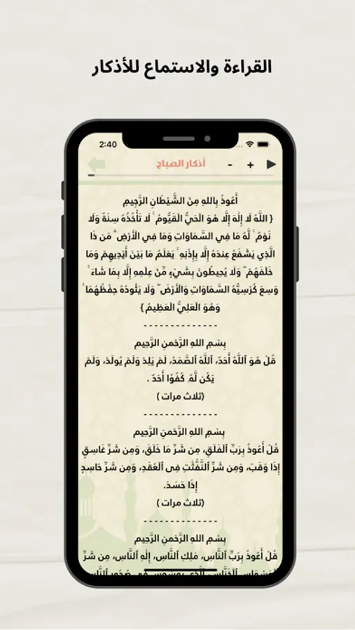 - دعم خاصية الاستماع للاذكار وشاشه الهاتف مغلقه.