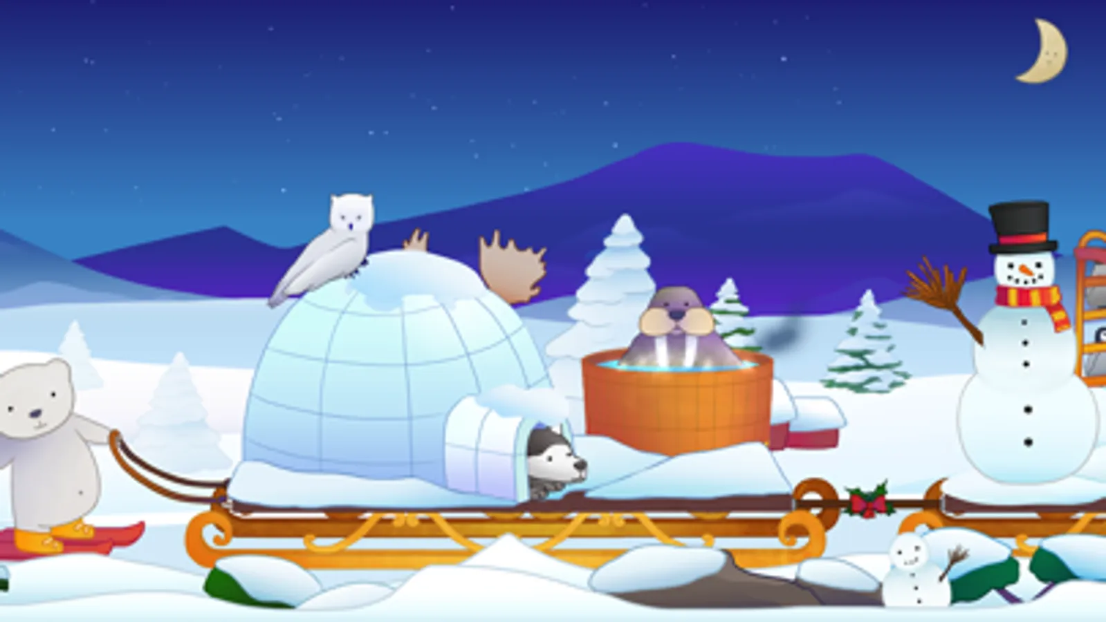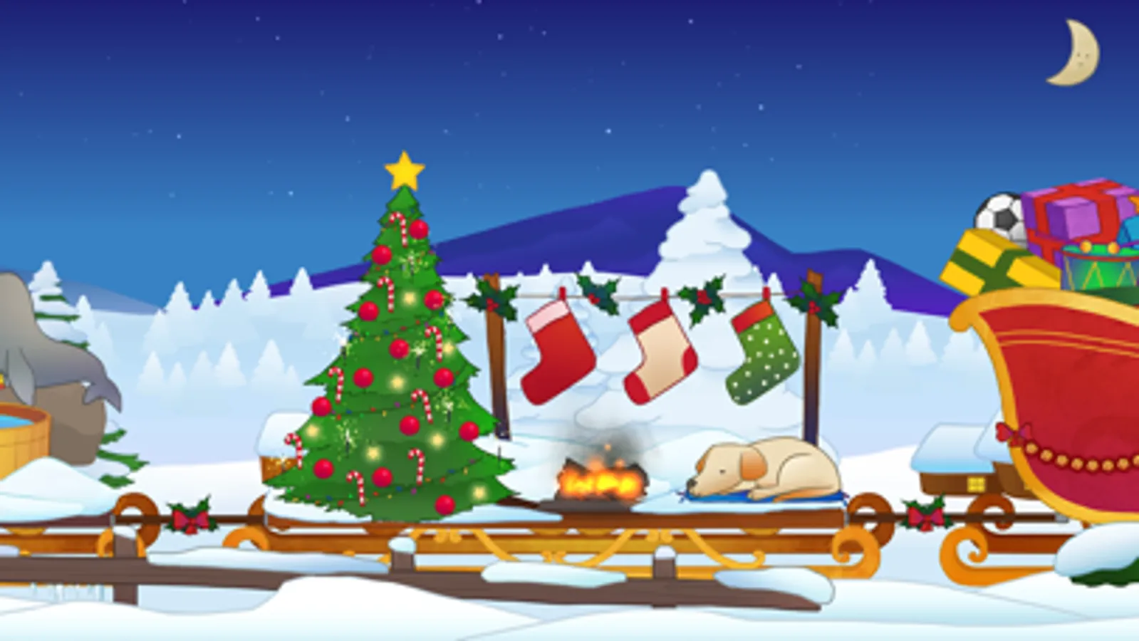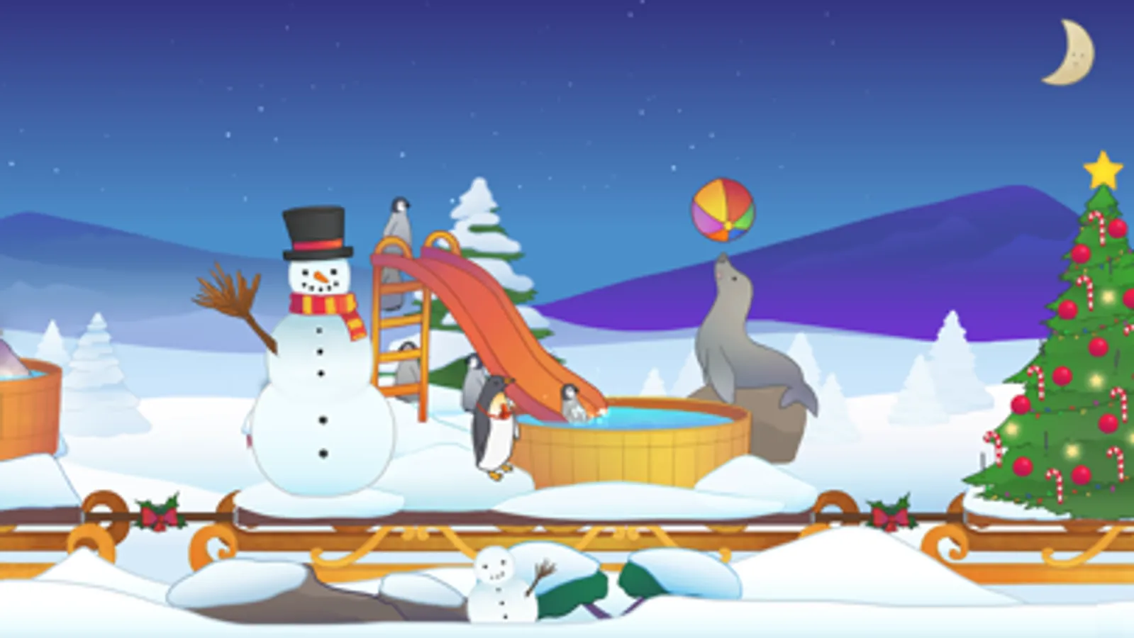 Children can follow Santa and his reindeers on the Christmas sleigh that is full of surprises. Your kids can unpack presents, see penguins going down the slide or build a snowman.